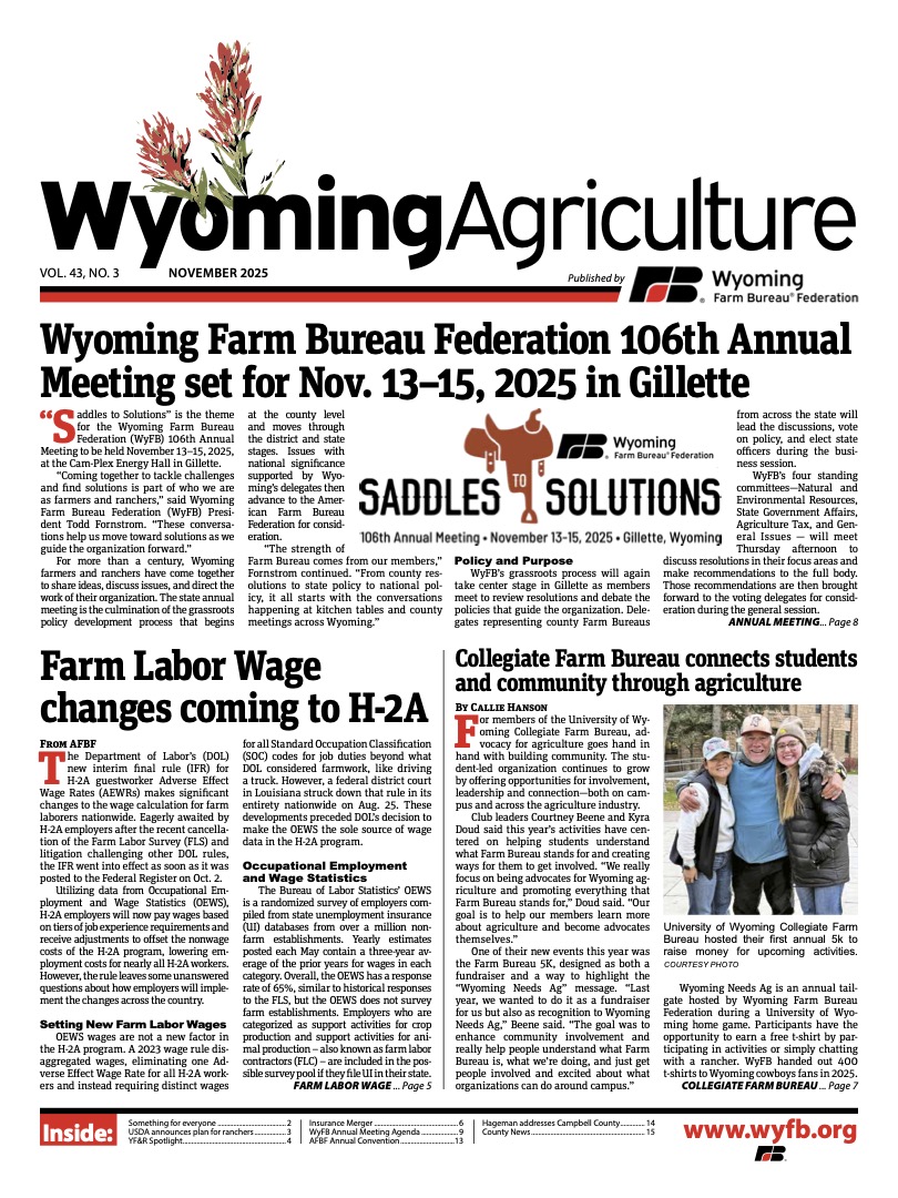 | December 2024/January 2025 | - Wyoming Farm Bureau Federation sets policy